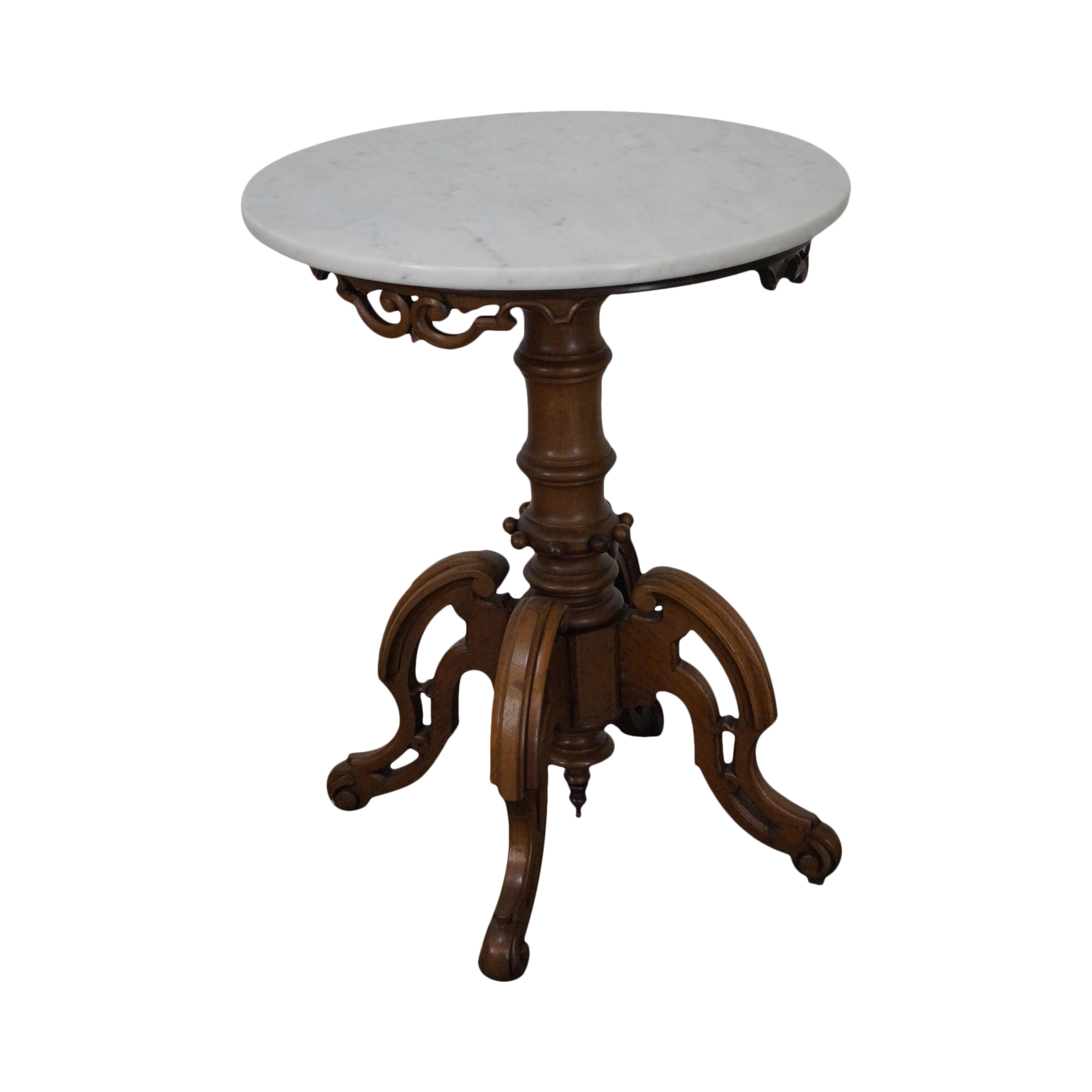 Vintage 1950's hollywood regency 15 round marble top table with solid brass filigree pedestal 18tall leemariesfinds 5 out of 5 stars (34) $ 358.68. Located in west palm beach, fl. The marble top rests on a finely sculpted walnut base. Antique victorian occational table marble top. Antique french provincial pair of side tables night stands marble top.